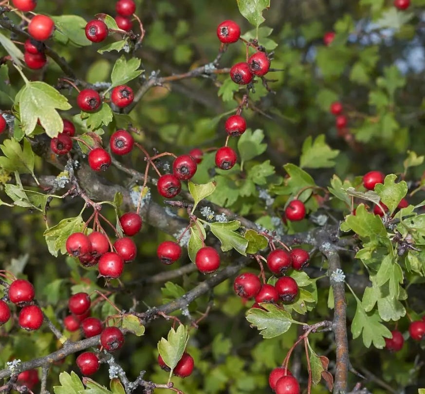 Hawthorn is one powerful plant. A pioneer species, hawthorn will thrive where most plants will not. She grows slowly, and gnarly, twisting and turning out of the ground in ways that make her look old and haggard in her prime. Though on Hawthorn these gnarling twists look charming and proud. Hawthorn reminds me that the lines, twists and bends that come from living life fully exposed at the edges are marks of real beauty.